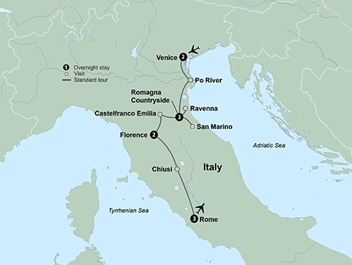 Be whisked away into the beauty and history of Italy when you journey to Venice, Florence, and Rome. Journey to the wine-producing Romagna countryside for a relaxing 3-night stay in a wine resort, and visit the Republic of San Marino, an enclave state of Italy. See how gondolas are crafted before cruising the canals of Venice on one yourself. Witness a performance of Vivaldi’s famous Four Seasons in the city he lived in. Explore the ancient underground tunnels of Chiusi’s Labyrinth of Porsenna. Try your hand at making Italian culinary classics before sitting down to dinner. Explore Rome’s artistic masterpieces, discover the city’s catacombs, or explore the recently restored Mausoleum of Emperor Augustus. Come along with us and embrace the history, culture, art and romance of this incredible country.
